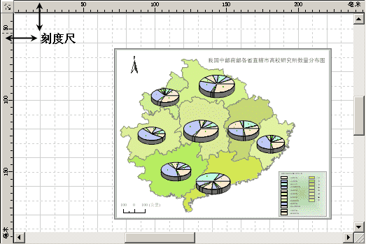 返回刻度尺设置对象。如下图所示,为一个布局窗口,窗口中显示了一个布局对象,图中黑色双箭头所指示的就是布局的刻度尺,通过刻度尺设置对象可以设置刻度尺的单位以及控制刻度尺是否显示等。