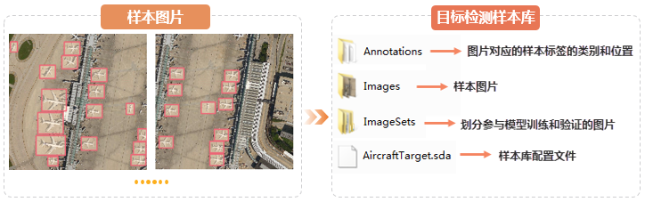 - 目标检测样本库:目标检测样本库中记录了样本图片、标签的类型和大小,以及样本库配置文件等信内容。