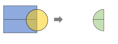 Used to compute the geometric intersection between two datasets, extracting portions of the source dataset that intersect with the overlay dataset and writing them into the result dataset.