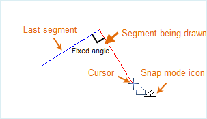 Snaps lines at fixed angles relative to previous segments. Illustration: The current segment forms a 90-degree angle with the previous segment. |