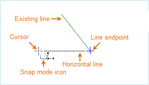 Snaps lines to horizontal/vertical orientation. Illustration: The currently drawn line is horizontal. |