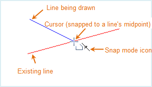 Snaps to midpoints of linear features. Illustration: Snapping to line midpoints. |
