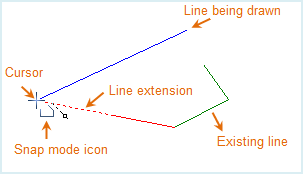 Snaps to extension lines of linear features. Illustration: Snapping to points along feature extensions. |