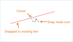 Snaps points to linear features. Illustration: Cursor position snaps directly onto lines. |