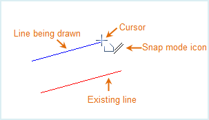 Snaps current line to be parallel to other linear features. Illustration: The currently drawn segment is parallel to existing segments. |