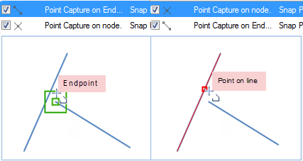 Snaps points to line/polygon endpoints. Illustration: Snapping to line endpoints. |