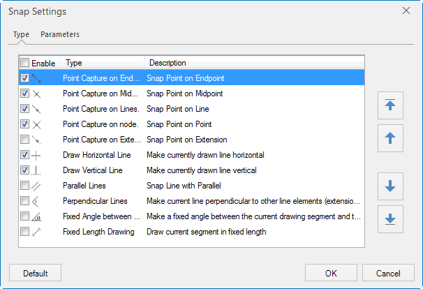 Figure: Snapping Priority - Enable: Check the Enable checkbox to activate all snapping types.