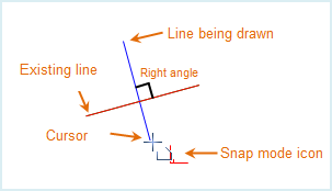 Snaps current line to be perpendicular to other linear features (including extensions). Illustration: The currently drawn segment is perpendicular to any existing segment. |