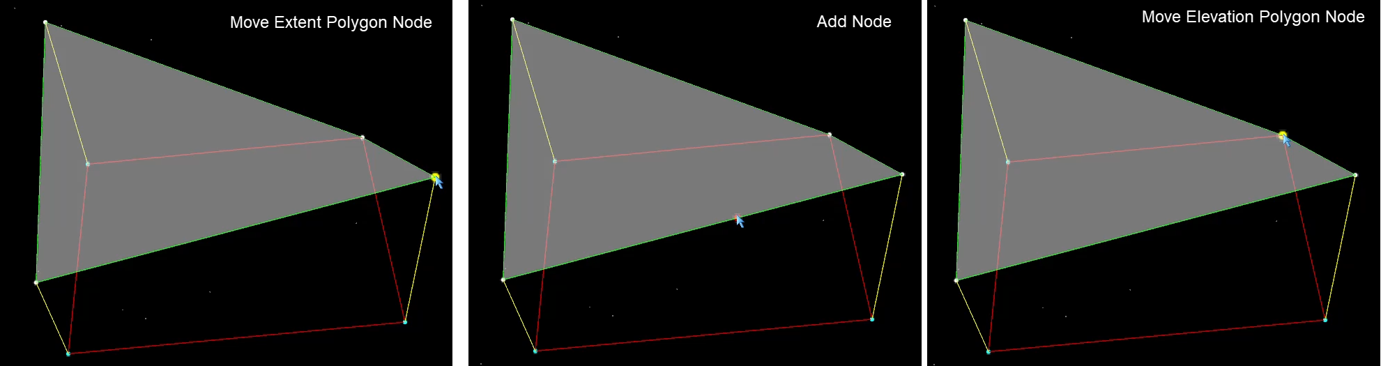 When the elevation polygon and extent polygon of a 3D polygon object coincide, press and hold the Shift key while moving the mouse to edit the elevation nodes of the polygon object.