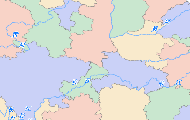 - Adjust the layer properties. The Provinces_R unique value thematic map layer is at the bottommost layer. The Border_L layer is above the Provinces_R unique value thematic map layer. The MainRiver_L layer is above this layer, and the Mainriver_L label thematic map layer is at the topmost layer.