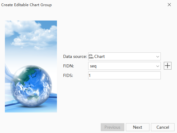 - Feature Identifier Sequence: Assign an FIDN to the data group. When a feature object is created, the corresponding FOID is also created and assigned to the feature object. Click the drop-down button on the right to select a feature identifier sequence. If no signature sequence has been created before creating the editable chart group, click the