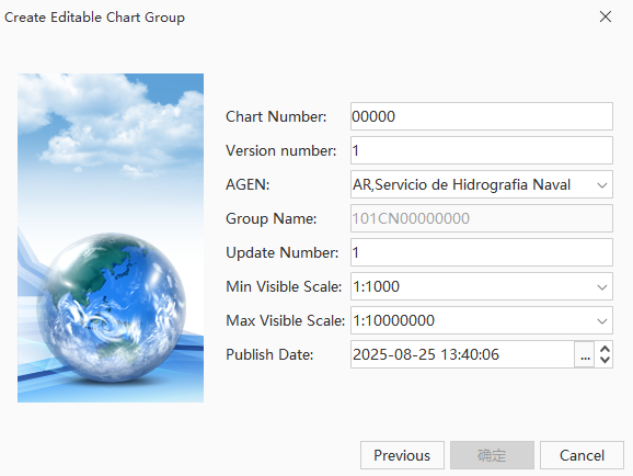 SuperMap iMaritimeEditor supports the creation of S-101 chart groups, allowing users to set metadata such as chart number, map range, producing agency, publication date, etc. Only one S-101 group can be created within a single data source, and all newly created or imported maps are uniformly managed within this group.