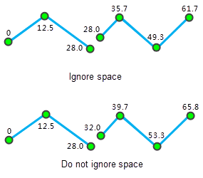 - Ignore Gaps Between Subobjects: Sets whether to ignore intervals between subobjects. By default, intervals are ignored. A route can be a complex object containing multiple subobjects. Gaps occur when two subobjects are not continuous. Whether to ignore gaps between subobjects affects the continuity of route scale values. If gaps are ignored, the scale values will be continuous; otherwise, they will be discontinuous, and the distance of the gap between subobjects will be the Euclidean distance between the two endpoints.