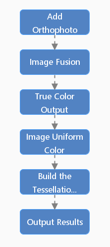 Workflow includes: Add Orthophoto, Image Fusion, True Color Output, Image Color Balancing, Build Mosaic Lines and Output.