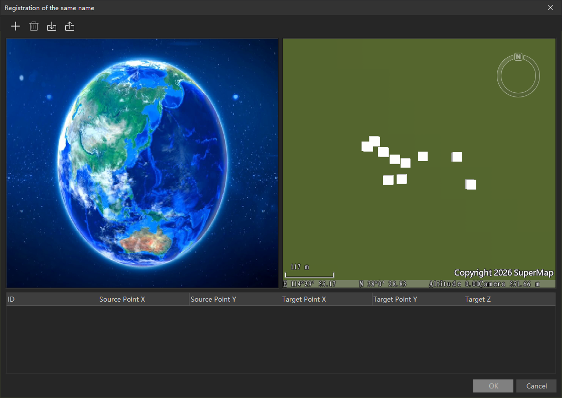 - Check the "Homologous Point Registration" checkbox and click the "Homologous Point Registration" button to pop up the homologous point registration dialog box.