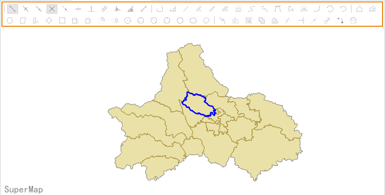 地图绘制时支持开启工具条模式,支持将绘制线、绘制面、对象编辑、捕捉设置相关的功能显示在工具条中,可快速选择绘制类型。