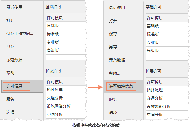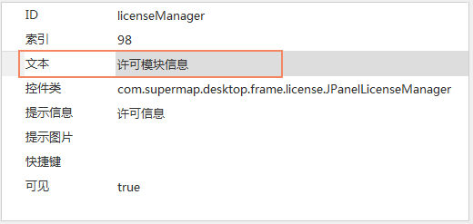 下面对文件菜单中的“许可信息”按钮进行定制,将该控件的显示名称修改为“许可模块信息”。