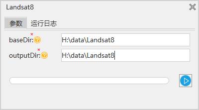 5. 双击此“Landsat8”工具,在弹出的对话框,进行参数设置,具体参数描述已经在导入python工具时详细说明,这里不再赘述。设置完成,单击执行按钮。