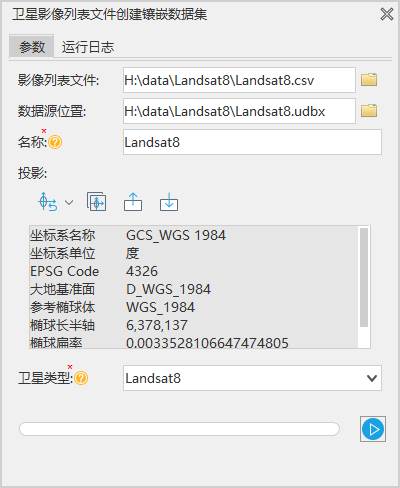 - 操作2:基于操作1的结果实现创建镶嵌数据集并添加卫星影像。通过“卫星影像列表文件创建镶嵌数据集”工具实现。
