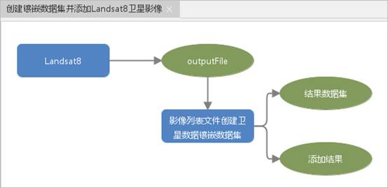 上述添加资源三号卫星影像的两个操作为分步骤执行,也可以使用处理自动化构建一个执行流程,如下图所示,执行该模型,完成创建镶嵌数据集并添加资源三号卫星影像的任务。