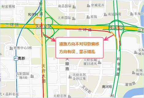 当缩小地图比例尺查看路况,道路会交错重叠到一起,此时无法清楚地看到双向道路的拥堵情况。基于上述地图比例尺较小的情况下,需要显示双线道路的路况,SuperMap提供了“路况线校正”功能很好地实现了所需效果,该功能会对线数据的路况是否显示和路况偏移值两个属性值进行处理,具体操作请参见路况校正。