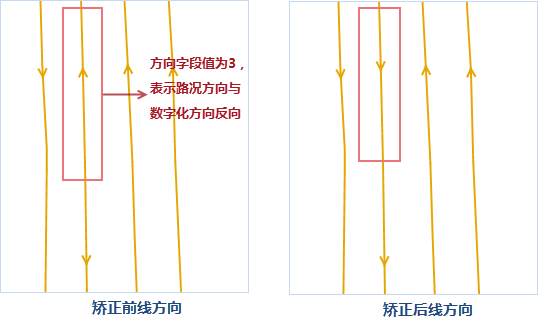 - 反向:表示道路方向与数字化方向想法,用3表示反向。
