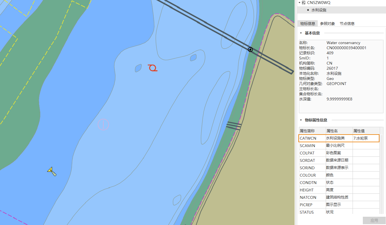 - 物标简称:在 CJ-57 中找到水利设施的“缩写词”为“WATCON”。