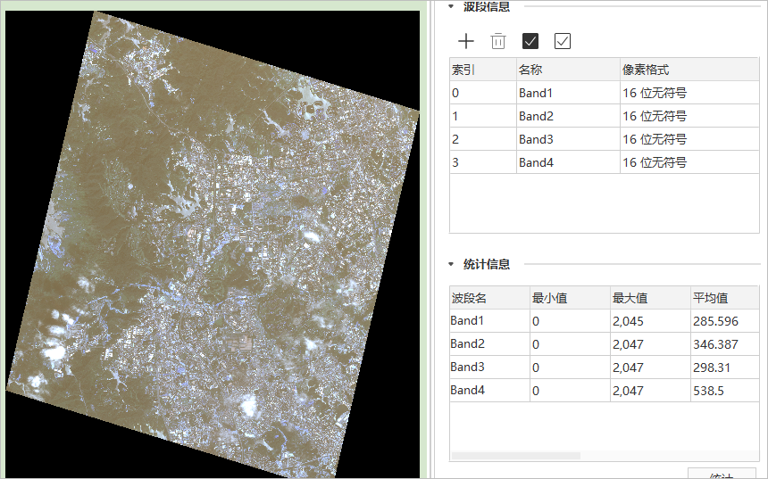 影像最值拉伸、标准差拉伸和高斯拉伸显示需要基于影像统计数据,如果影像没有统计数据,程序将提示您计算。若影像中缺失无值或者无值信息错误将会导致计算结果错误。