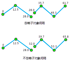- 忽略子对象空隙: 设置是否忽略子对象之间的间隔。默认忽略子对象之间的间隔。路由可以是包含多个子对象的复杂对象。当两个子对象不连续时,就会产生间隔。是否忽略子对象的间隔影响着路由刻度值的连续性,如果忽略子对象的间隔,刻度值将是连续的,否则就是不连续的,此时子对象的间隔的距离就是两个端点的直线距离。