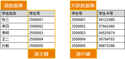 在非关系属性化的一对一和一对多关系中,源主键为源数据集中与关联数据集相关联的字段。而在关系属性化或多对多关系中,源主键为源数据集中与关系数据集相关联的字段。