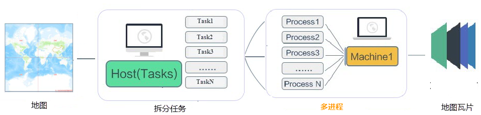 随着技术的进步,地图数据量已经迈进海量数据的时代,而单进程切图的效率已经不能满足需求,为了提高用户的切图效率,合理利用计算机系统资源,提供了多进程生成地图瓦片功能。