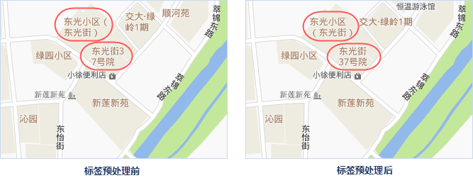 - 标签预处理成功之后,结果字段的字段值会在换行处加上指定的换行符,如下图所示,左侧是原字段信息,右侧是加上换行符后的标签预处理结果。