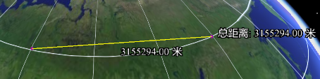 - 将鼠标移动到场景窗口中,鼠标状态变为红点时 ,此时即可在场景中的地球表面进行距离量算。