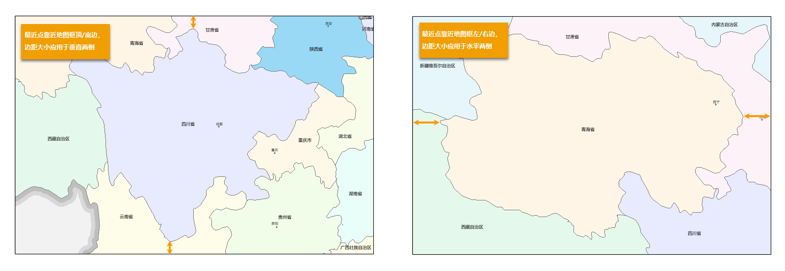 - 百分比:百分比是相对索引对象最小外接矩形的最长边的百分比。边距大小值为0%表示没有边距,因此,对象的顶边和底边或者左边和右边将与地图框对齐,具体取决于最近点的位置。值为100%则表示边距为对象最小外接矩形最长边的一半,将两侧的边距相加时,结果值将等于这个对象外接矩形最长边的距离。默认设置为10%。