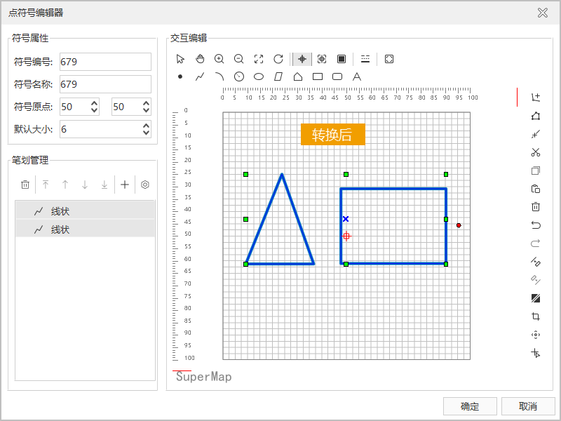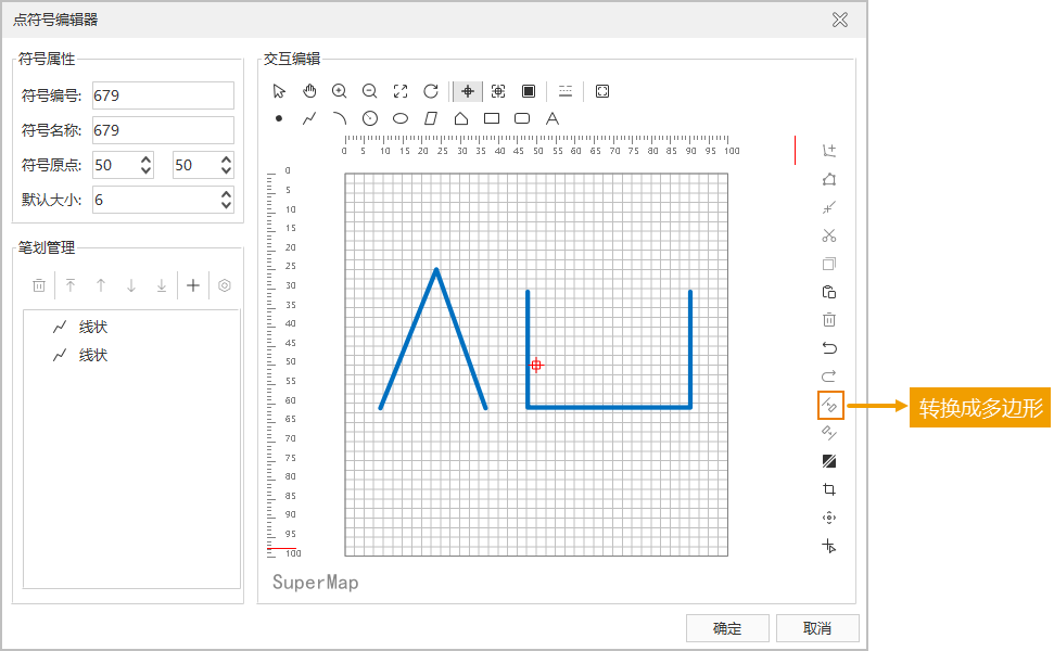 - 在符号编辑区域,选中线类型笔划,可以选中多个;