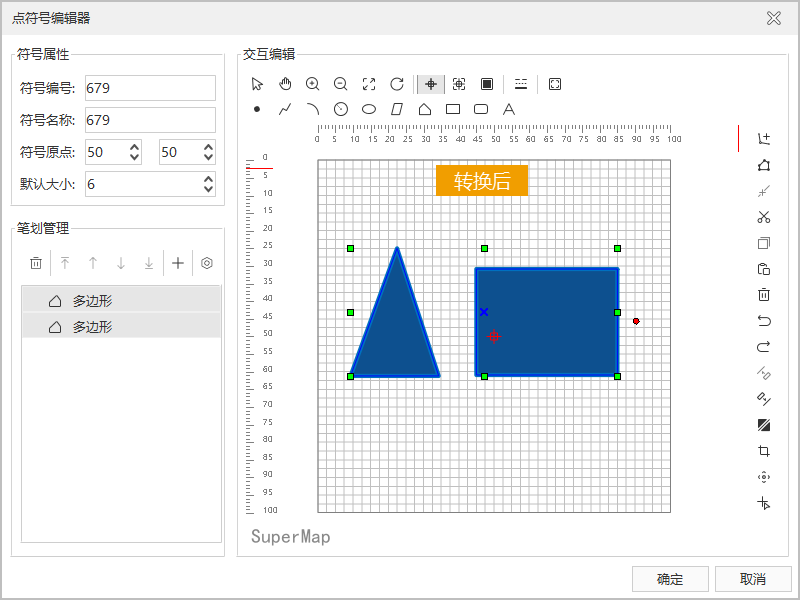 - 在符号编辑区域,选中面类型笔划,可以选中多个;