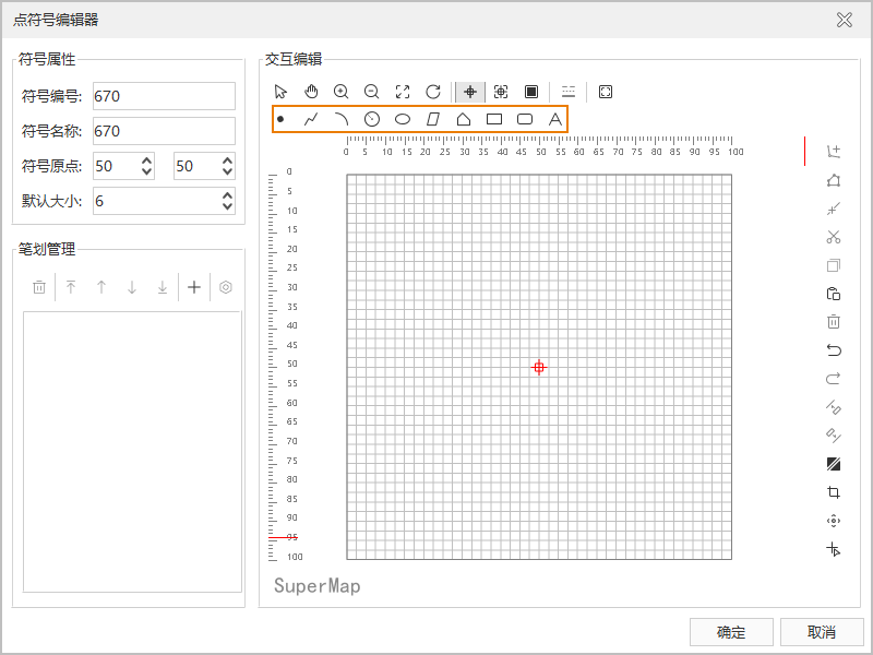 - 在符号编辑区域中,在目标位置单击鼠标,完成一个点对象的绘制,如果再次绘制点对象,重复以上操作步骤。