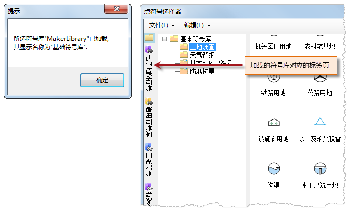 - 同一个符号库文件只能被加载一次,如果再次加载已加载的符号库文件,将显示如下所示的提示框,关闭该提示框后,这个已加载的符号库标签页将显示到所有标签页的最前面。