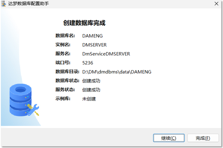 数据库安装完成后,您可以使用“达梦数据库配置助手”,启动一个数据库实例。