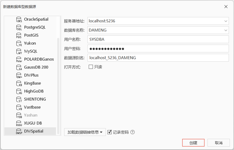 在使用 SuperMap iDesktopX 连接 DM 数据库或 DMSpatial 空间数据库进行操作之前,请确认数据库已正确安装。您可以通过达梦官方渠道(https://www.dameng.com)获取数据库安装包和部署指南。