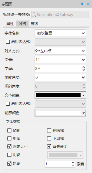 - 专题图功能区中分为属性、风格 和 高级 三个项,在这里只介绍属性和风格项中的参数设置。