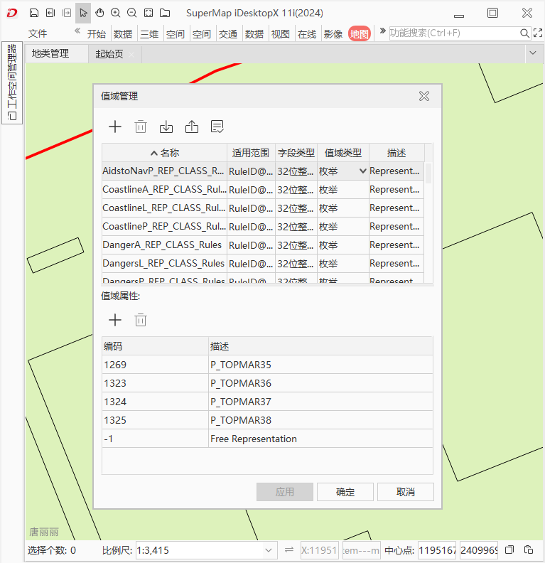 如下图,在迁移一份海岸线地类管理数据时,将数据中值域信息一同迁移。