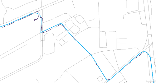 下图中紫色点集为轨迹点数据,蓝色实线为将轨迹点进行道路匹配后的线数据。