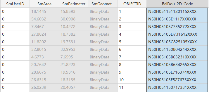 若执行成功,则在源数据集中新增"BeiDou_2D_Code"字段,用于存储20位的北斗二维位置码。