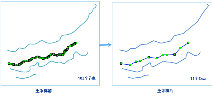 | 重采样距离 | 0.0 | 重采样的容限值,容限值越大,采样结果数据越简化。 单位与数据集坐标系单位相同。 | Double |