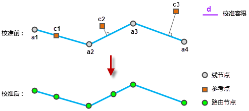 注意事项:校准路由的两种校准方式都要求用于校准路由的参考点至少为2个,并且校准时,都采用离待校准节点最近的两个参考点来校准。