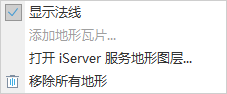 - 地形图层结点右键菜单提供以下操作: