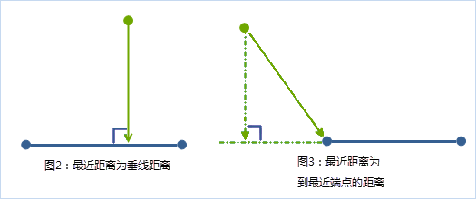 图1:点对象之间的距离 - 点对象到线对象的距离是点到线的垂线或最近的节点的距离