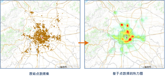 大数据可视化可以做到实时,还可以根据地图比例尺的变化实时更新分析结果。目前,应用程序提供了便捷的数据可视化功能,对点数据实现一键制作热力图或网格聚合图。