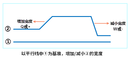 - 通过 Ctrl+Q 或 Ctrl+W 切换平行线,依次设置每条平行线的宽度。当平行线为红色填充区域,则表示当前平行线宽度可调整。